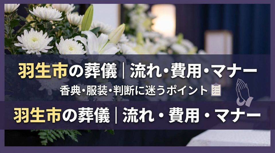 羽生市で葬儀を進める際、まずは全体の流れを把握することが、ご遺族の安心や落ち着きにつながります。本記事では、羽生市における葬儀の注意点を「流れ・香典・服装・... -